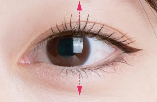 黒目の幅の中央にボリュームをつけて丸い目にします。まつ毛を内側によせます。