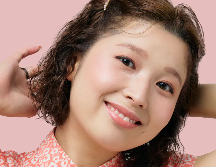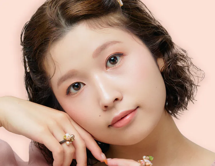 唇の山は丸みをもたせ口角にかけてラインを内側に描き、微笑みのある表情をつくる。