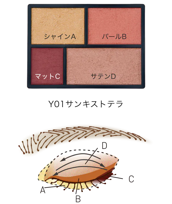 ①D:上まぶたの目の際からアイホールまでグラデーション。
