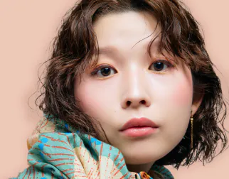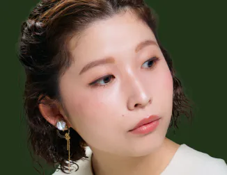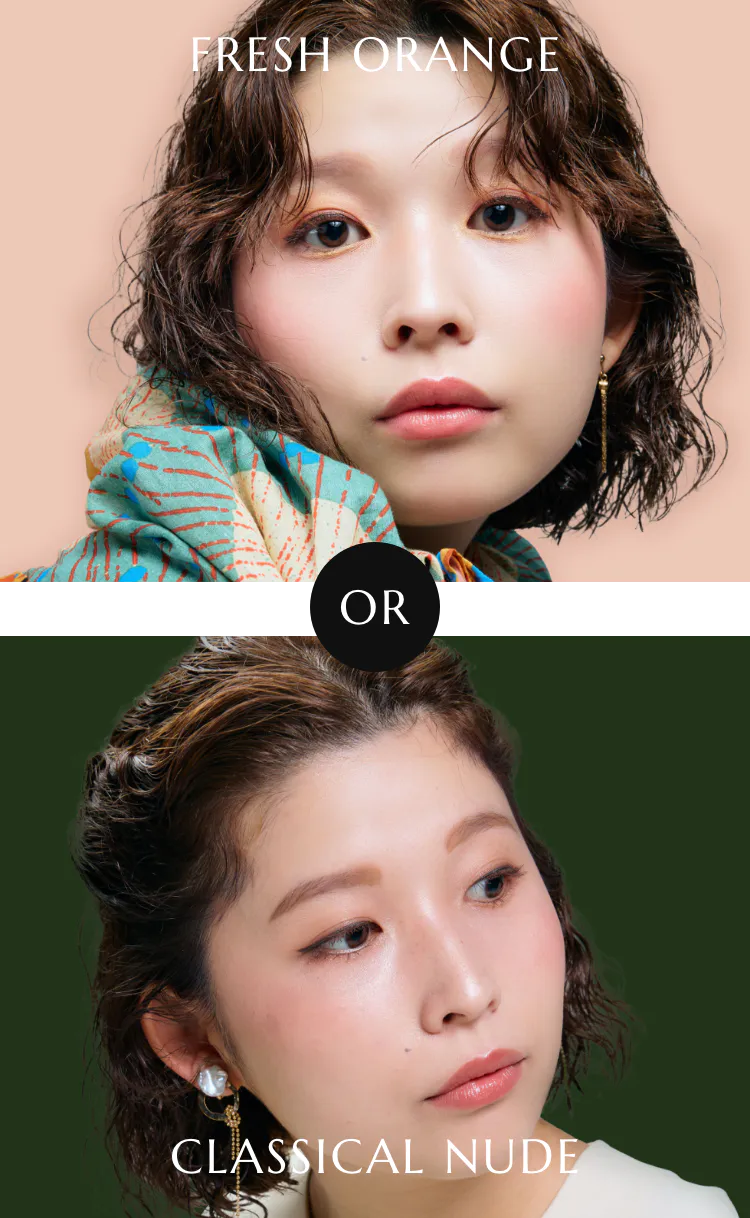 唇の形に添ってポピーをぬり、やや曲線的なラインでナチュラルに仕上げる。セラムを重ねて、ツヤ・うるおいアップ。