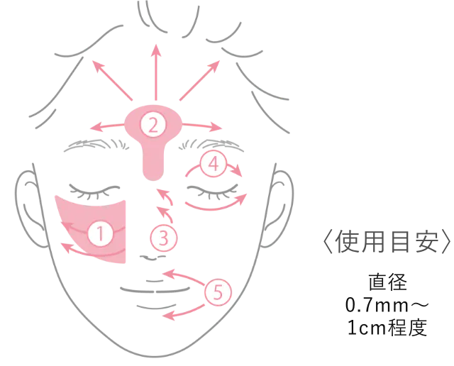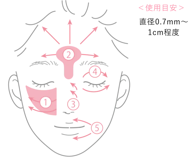 お顔の中心から外側に向かって、伸ばしていくことがポイントです。