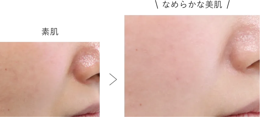 パール状の微粒子パウダーが光反射の効果で、キメになじみ毛穴や小ジワを補正し、なめらかな肌へと仕上げます。